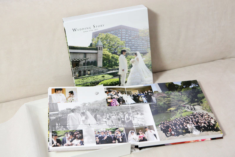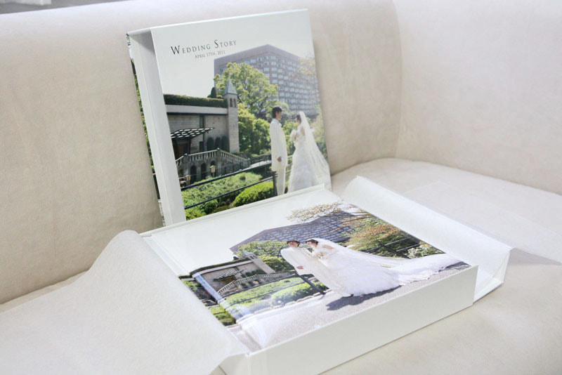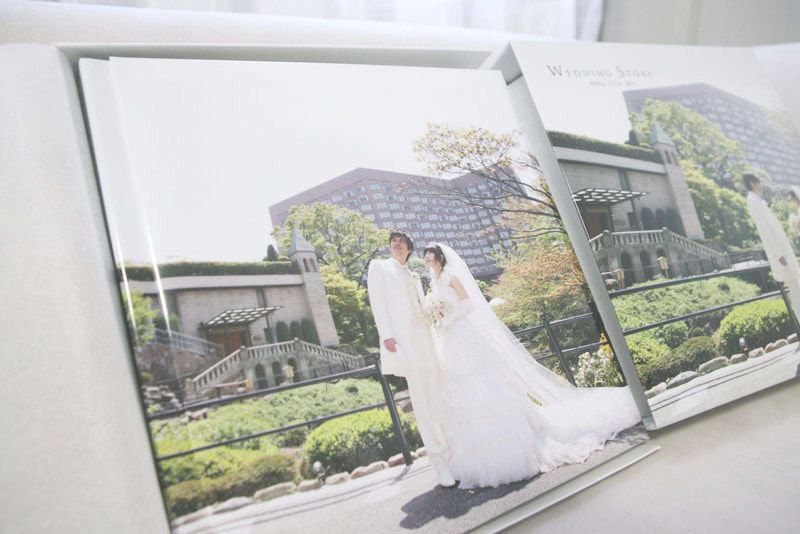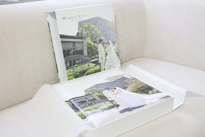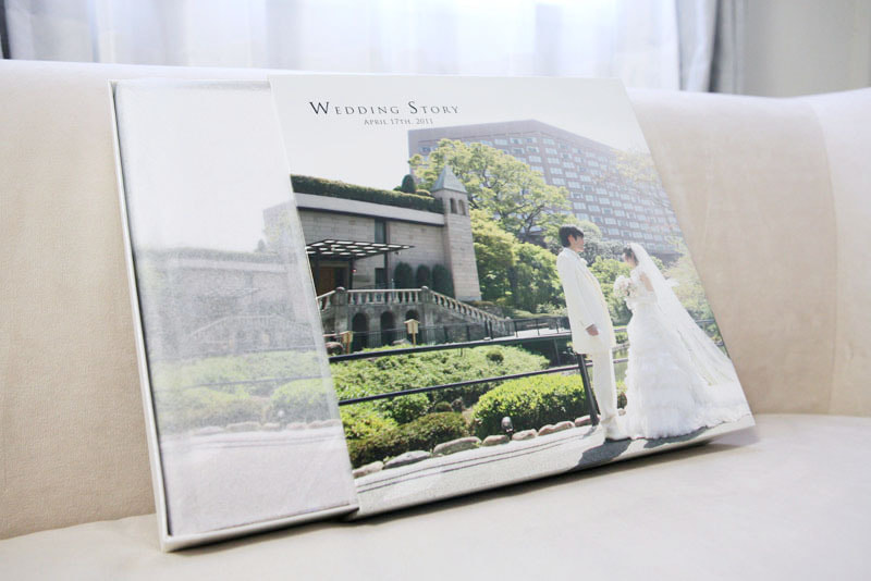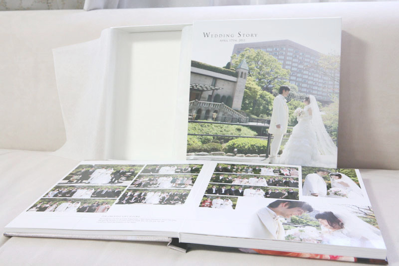 重厚感のある厚手のボードページ仕様で、表紙にはさらに高級感を演出した画像入りのクッション素材を使用